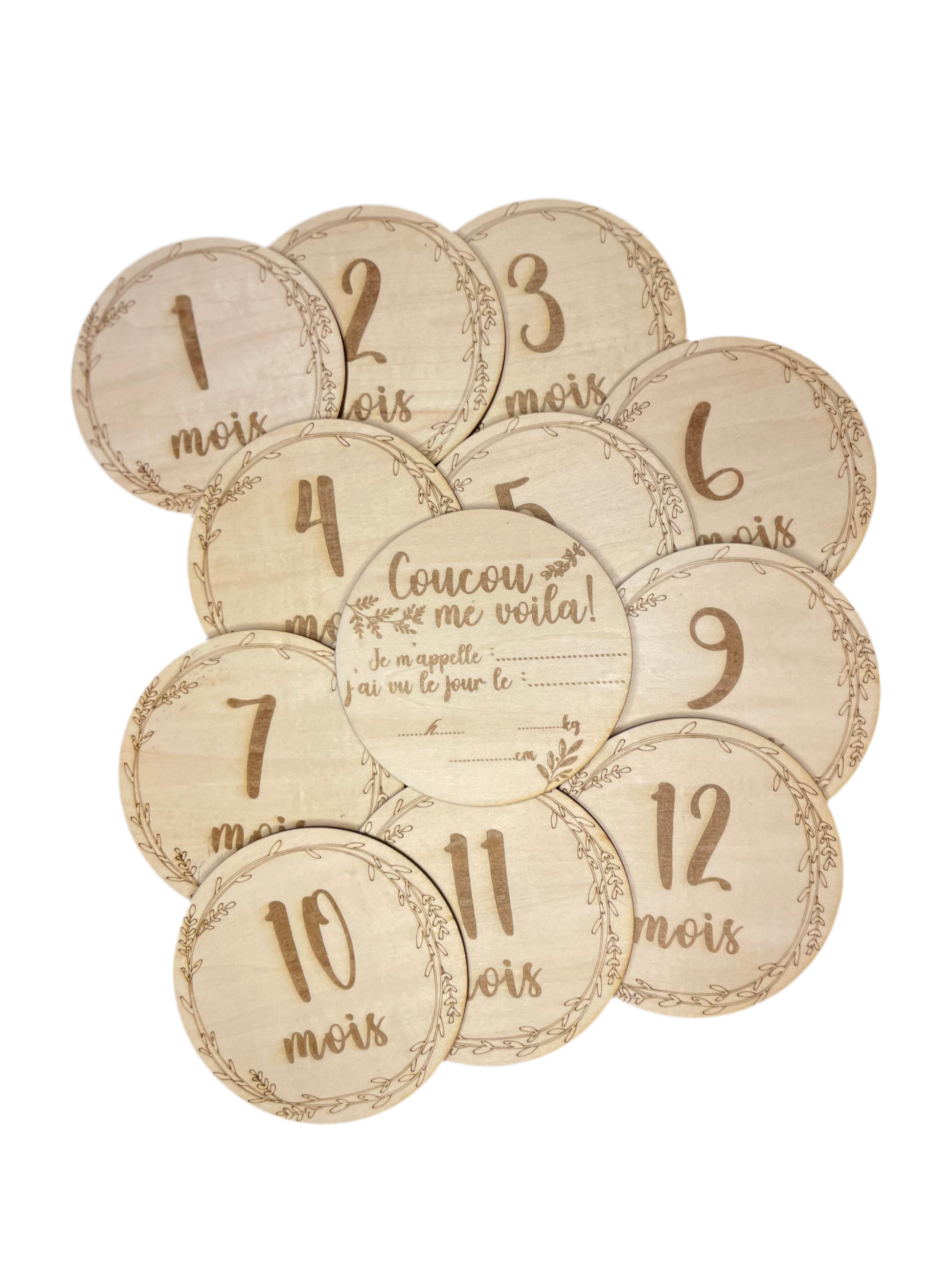 - Cet ensemble complet réunit plusieurs articles : cartes mois et carte bienvenue, pensées pour accompagner les premiers moments de bébé.